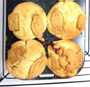 先日は紅茶のマーマレードマフィン、いちごジャムマフィン、キャラメルナッツマフィン、クッキーを森と海の仲間たちで作りました。