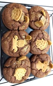 8月18日(月)午前中は、ラムレーズンバナナとガーリックバジルトマトの米粉マフィン、海の仲間たち米粉クッキー、米粉スコッキー、ココナッツ入りココア&プレーン米粉クッキーを作りました。