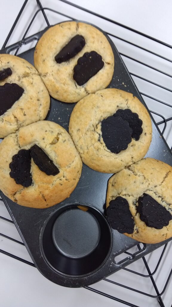 本日のお菓子は、紅茶マーマレード米粉マフィン、いちごジャム米粉マフィン、海の仲間たち米粉クッキー、米粉スコッキーを作りました。