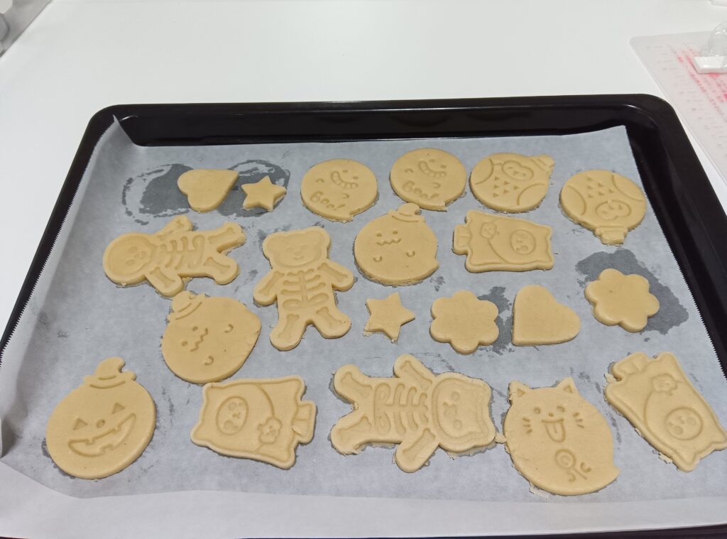 10月3日(金)の午前中は、カレーマヨポテトとキャラメルナッツの米粉マフィン、米粉スコッキー、ココア&プレーン米粉クッキー、米粉ロシアンケーキを作りました。
