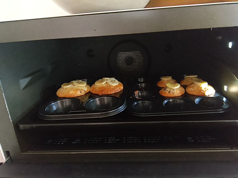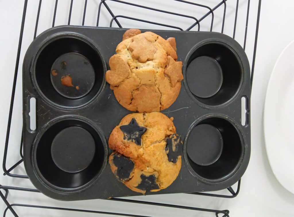 10月6日(月)の午前中は、プレーンとラムレーズンバナナの米粉マフィン、米粉スコッキーを作りました。