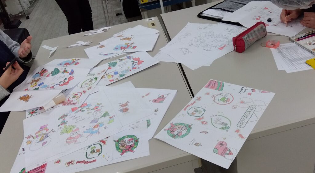 そのあとは同じくクリスマス用のお絵描きをしました。