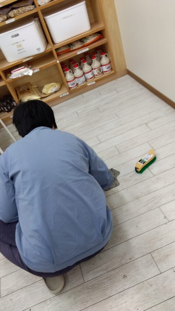 棚の中を片付けたり、床を拭いたり、普段なかなか手が回らない場所まで丁寧にお掃除。