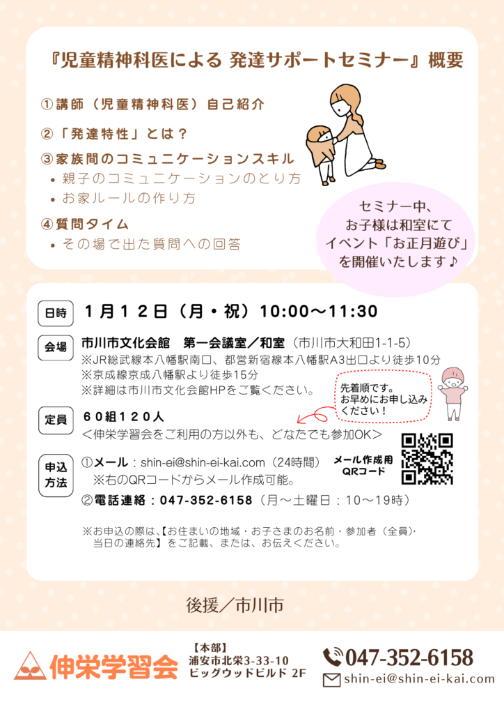 児童精神科医による「発達サポートセミナー」を開催いたします。