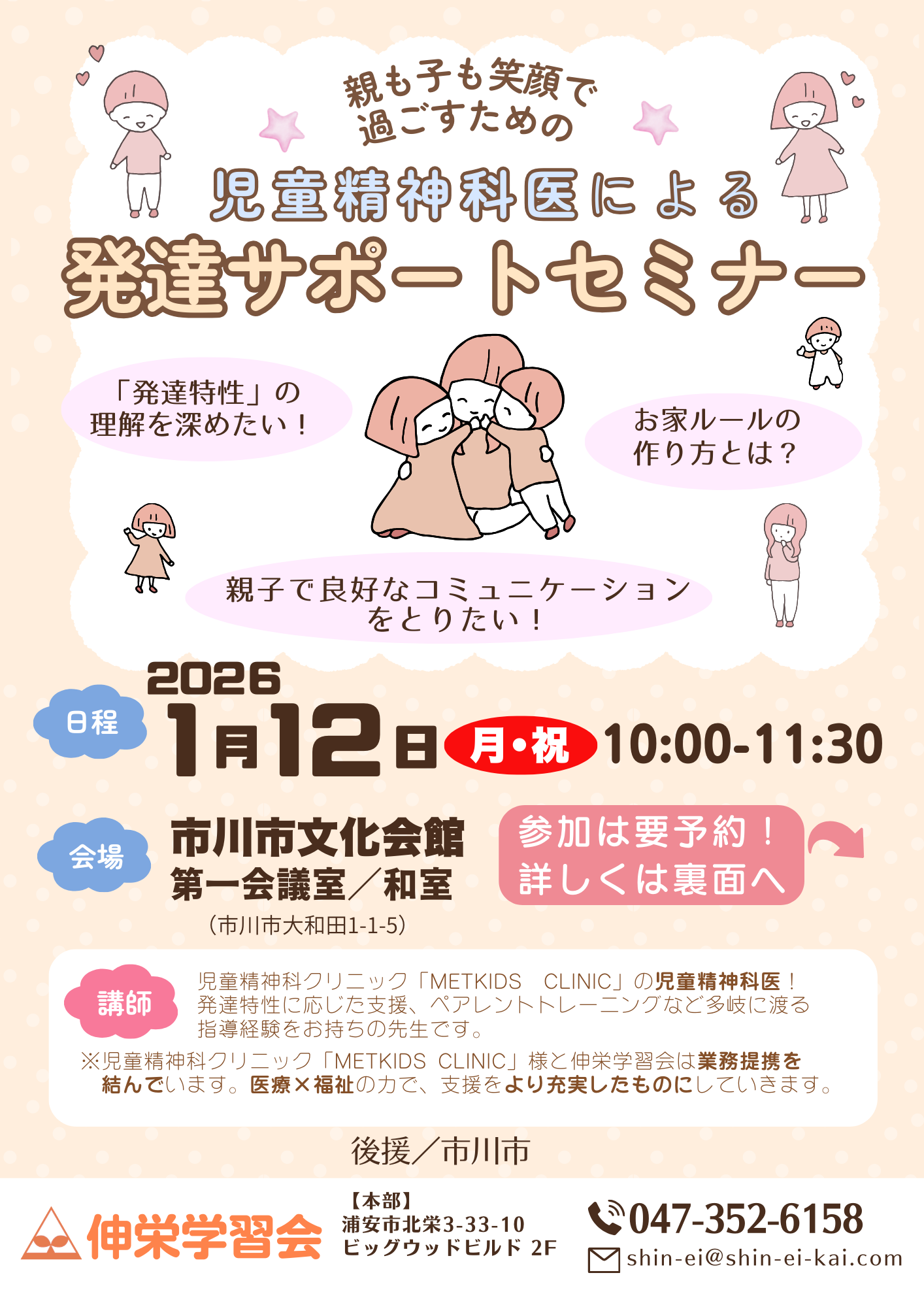 当日は、児童精神科クリニック METKIDS CLINIC の児童精神科医を講師にお迎えし、