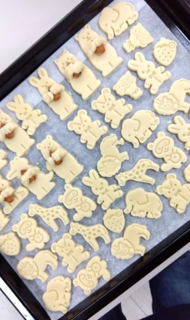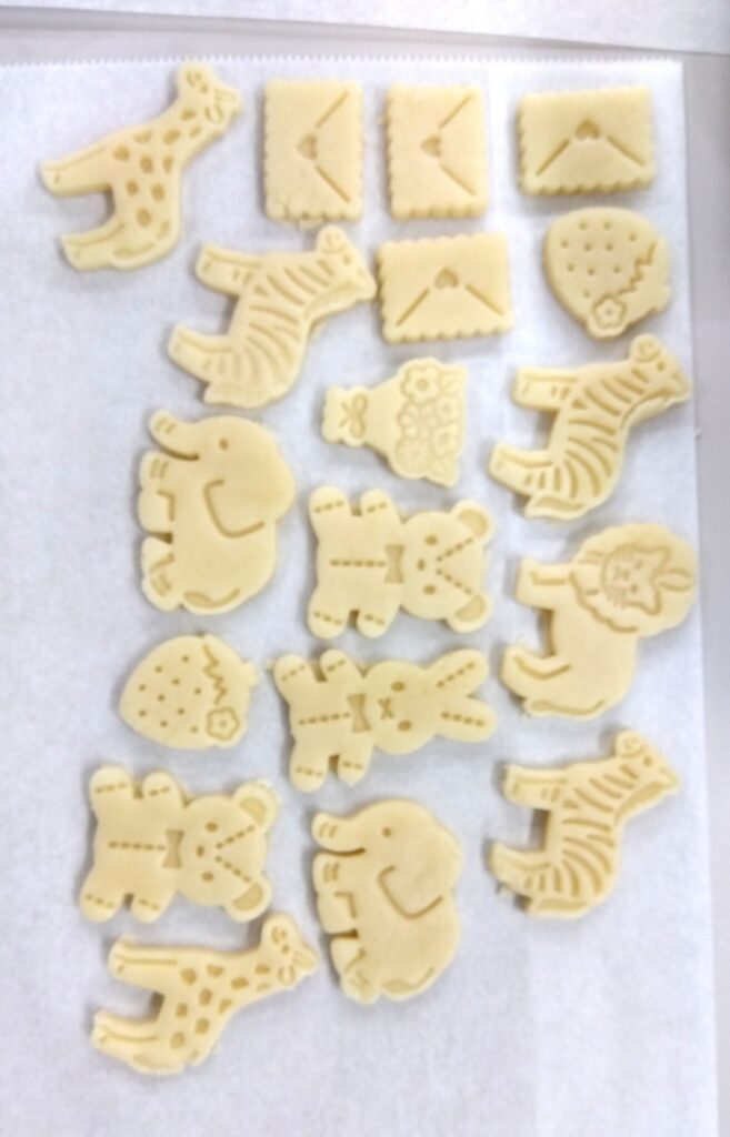本日の午前中の作業は、海の仲間たちの米粉クッキーを作りました。準備するものはまず手袋つける前にクッキー生地でさわったため、2度手間を掛かりすぎつつ無駄遣いしてしまって作業が進めませんでした。