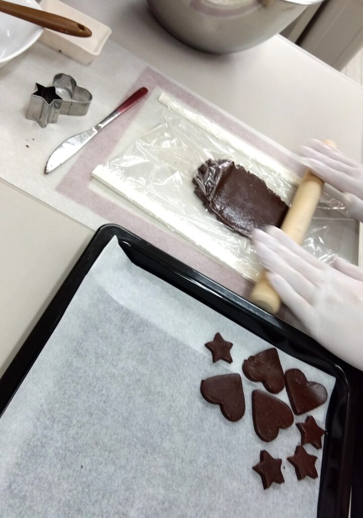 本日の午前中の作業は、私が担当したクッキー作りでやった仕事はココアクッキー&カラークッキーの紫バージョンをこの2つで頑張ってやりました。