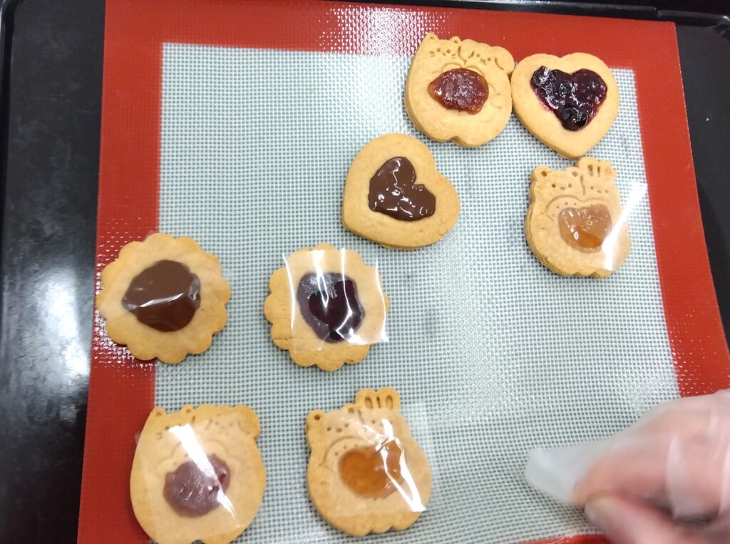 本日のお菓子はキャラメルナッツ米粉マフィン、チョコ米粉マフィン、海の仲間たちクッキー、バジルトマトクッキー、ロシアンケーキのジャム乗せでした。