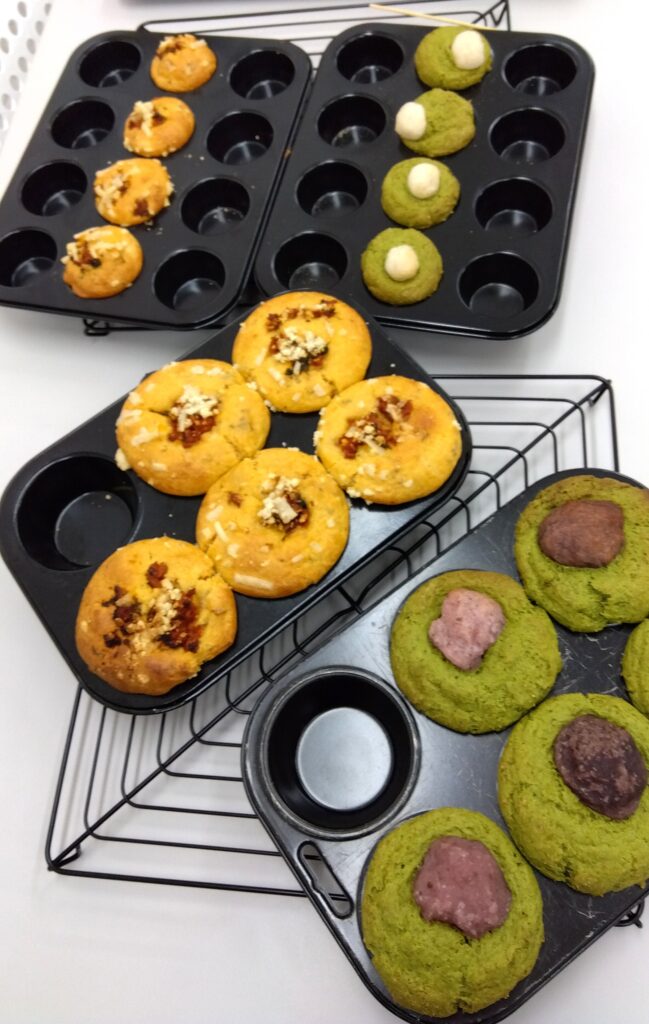 午前中はガーリックバジルトマト米粉マフィンを作りました。