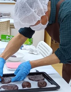 今日は人数が多い為、男性陣が上で作業、女性陣がお菓子を作る作業になりました。