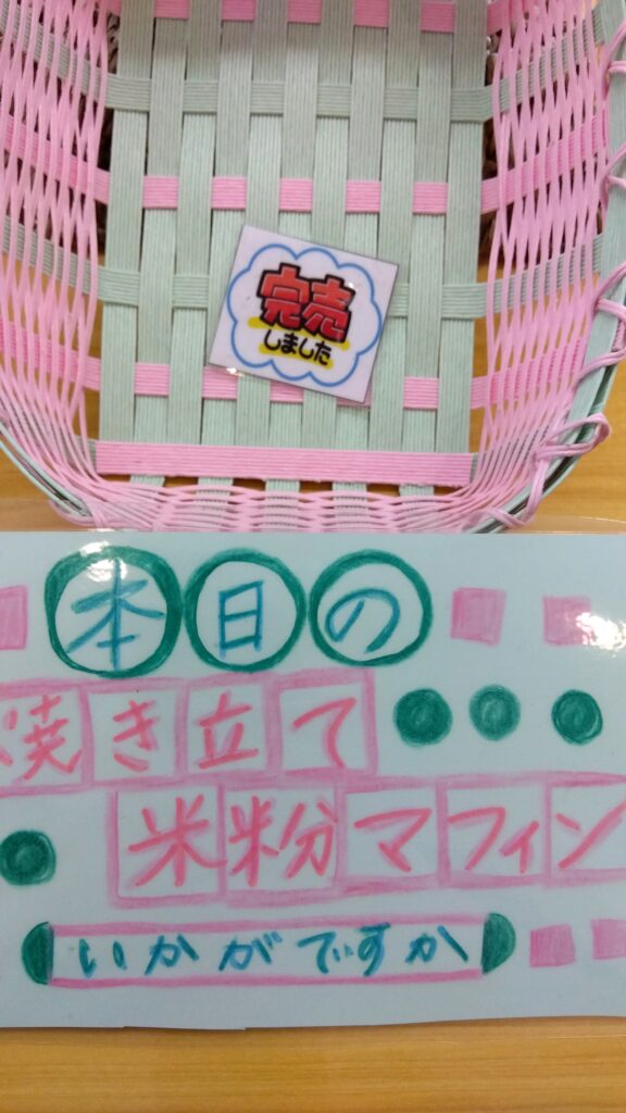 午後はcaféに行きました。今日はお客様がクッキーとマフィンをお買い上げしてくださいました。美味しいのですが、焼きたてマフィンはあまり売れないのですが、今日は売れました。看板書きをしたのですが、アイディアが降りてこず、文字しか書けませんでした。