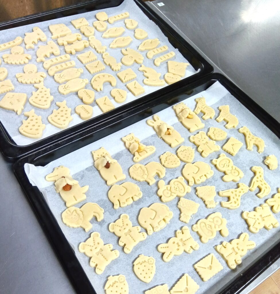 今日は紅茶のマーマーレードマフィン、海の仲間たちのクッキー、森の仲間たちのクッキー、米粉スコッキーを作りました。