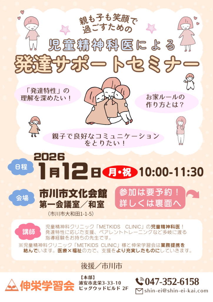児童精神科医による「発達サポートセミナー」開催のお知らせ(市川市後援)