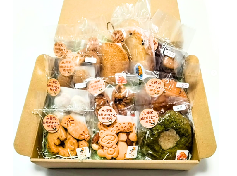 『伸栄 自然派おかし研究所』では地球にも身体にも優しいヴィーガンのお菓子販売しています。米粉マフィンを中心に、各種ヴィーガンお菓子を取り揃え、少しずつラインナップを増やしています。『研究所』という店名のもと、研究を重ね、毎日の成長を感じていただけるお店にしたいと考えております。また、当店で使用している米粉はすべて国産無農薬米粉。扱う食材もなるべく有機のもの、無添加のものにこだわって、全国から取り寄せを行っています。